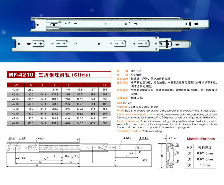 MF-4210三折鋼珠滑軌